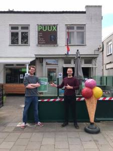En de laatste zes en een halve week was Puux 7 dagen per week open en verkochten ze er broodjes, koffie, frietjes, maar dit keer door hun ijsloket dat ze vorig jaar in hun gevel hadden laten zetten.